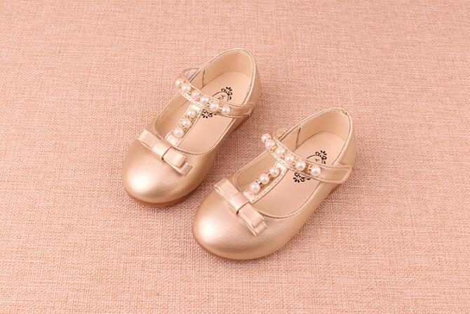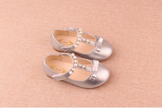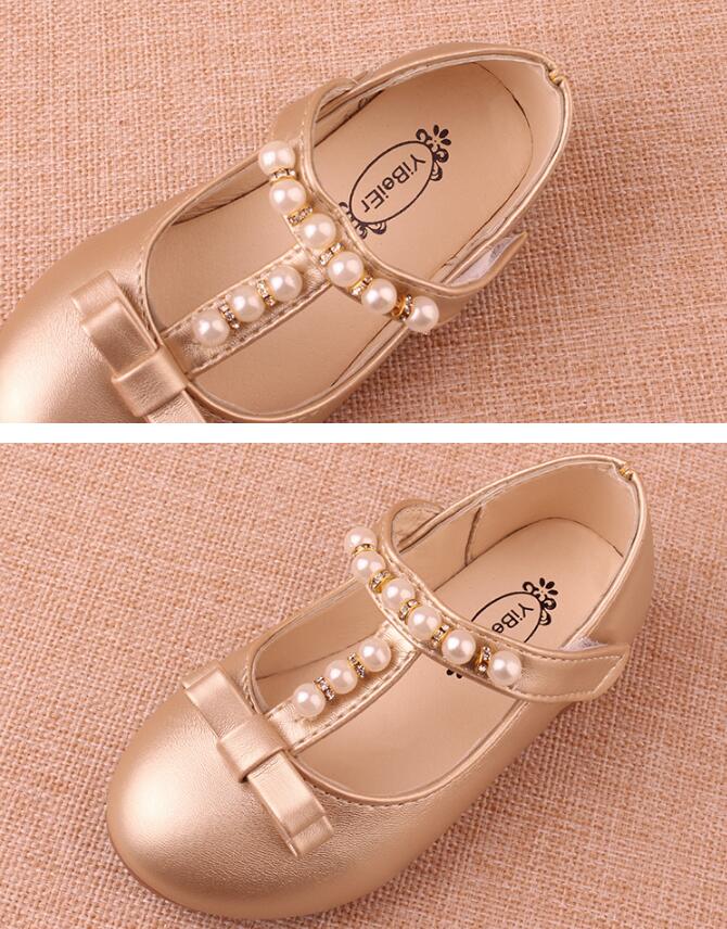 Children's shoes 2017 spring and autumn new Korean girls leather shoes female baby bow Princess shoes pearl magic stickers shoes