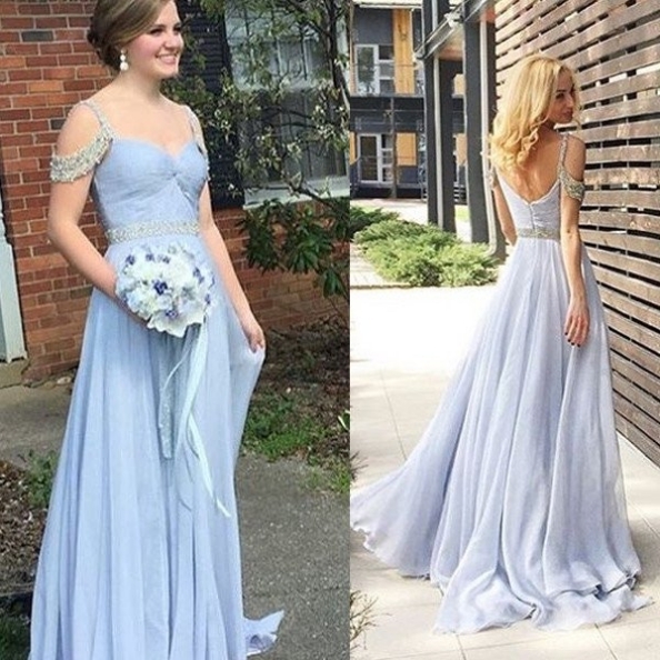 Blue Beading Straps A-line Chiffon Prom Dresses