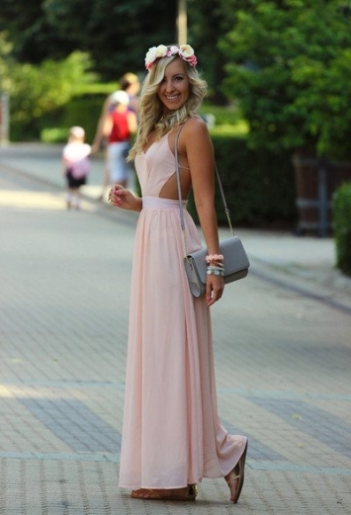 Sheath/Column Halter Sleeveless Natural Backless Floor-Length Chiffon Prom Dresses