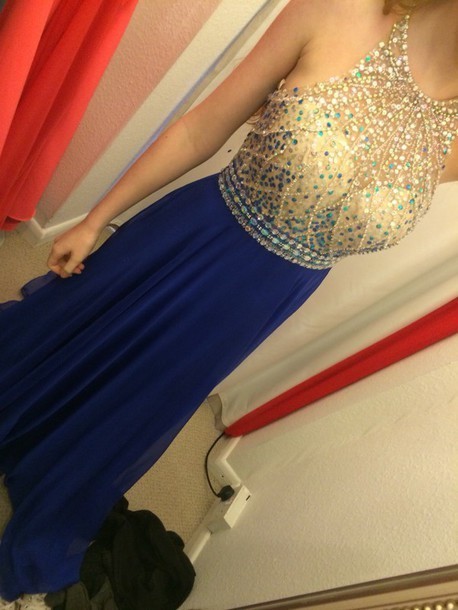 Shining Royal Blue Prom Party Dresses Princess Guest Backless Two Straps High Neck Cross Sequined Crystal Chiffon Formal Evening Pageant Dre