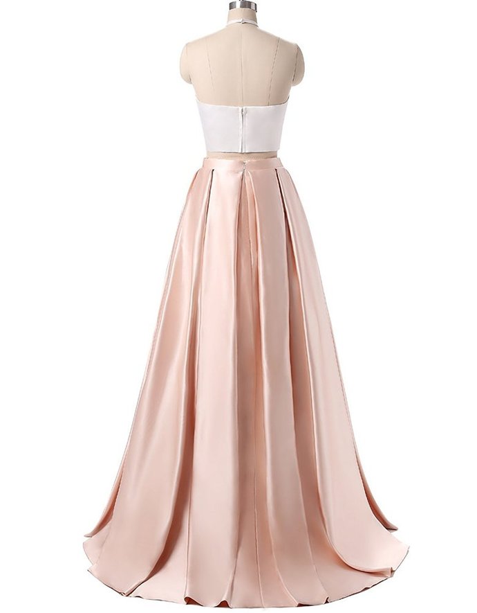 Light Pink Prom Dress, Simple Satin Prom Dress, 2 Pieces Prom Dresses, Senior Prom Dress, Prom Dress for Teens
