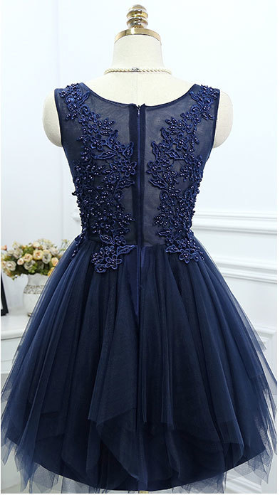 Charming Prom Dress,Navy Blue Tulle Prom Dresses,Elegant Prom Dress,Beaded Prom Gown,Short Homecoming Dress