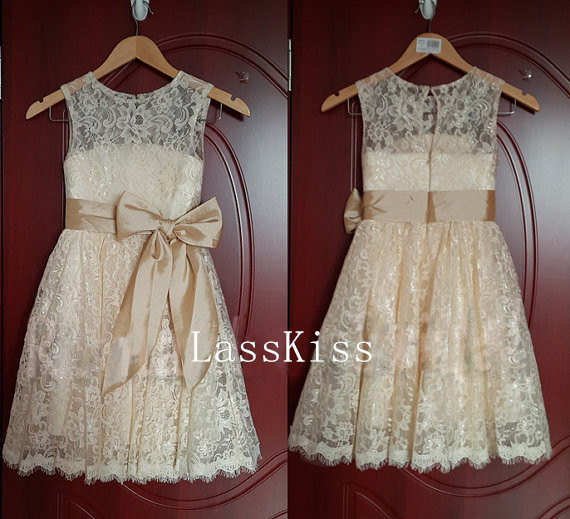 Cute A-line Knee Length Flower Girl Dress Lace Dress Country Skirt Summer Dress