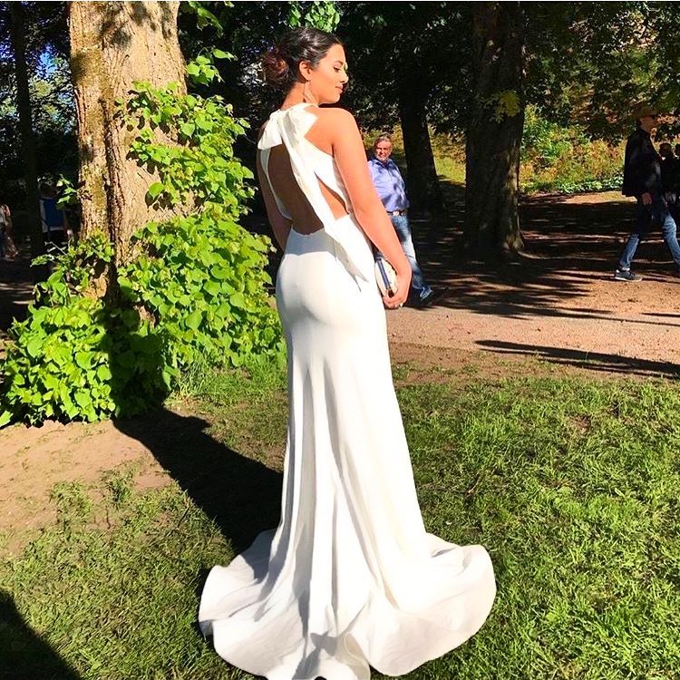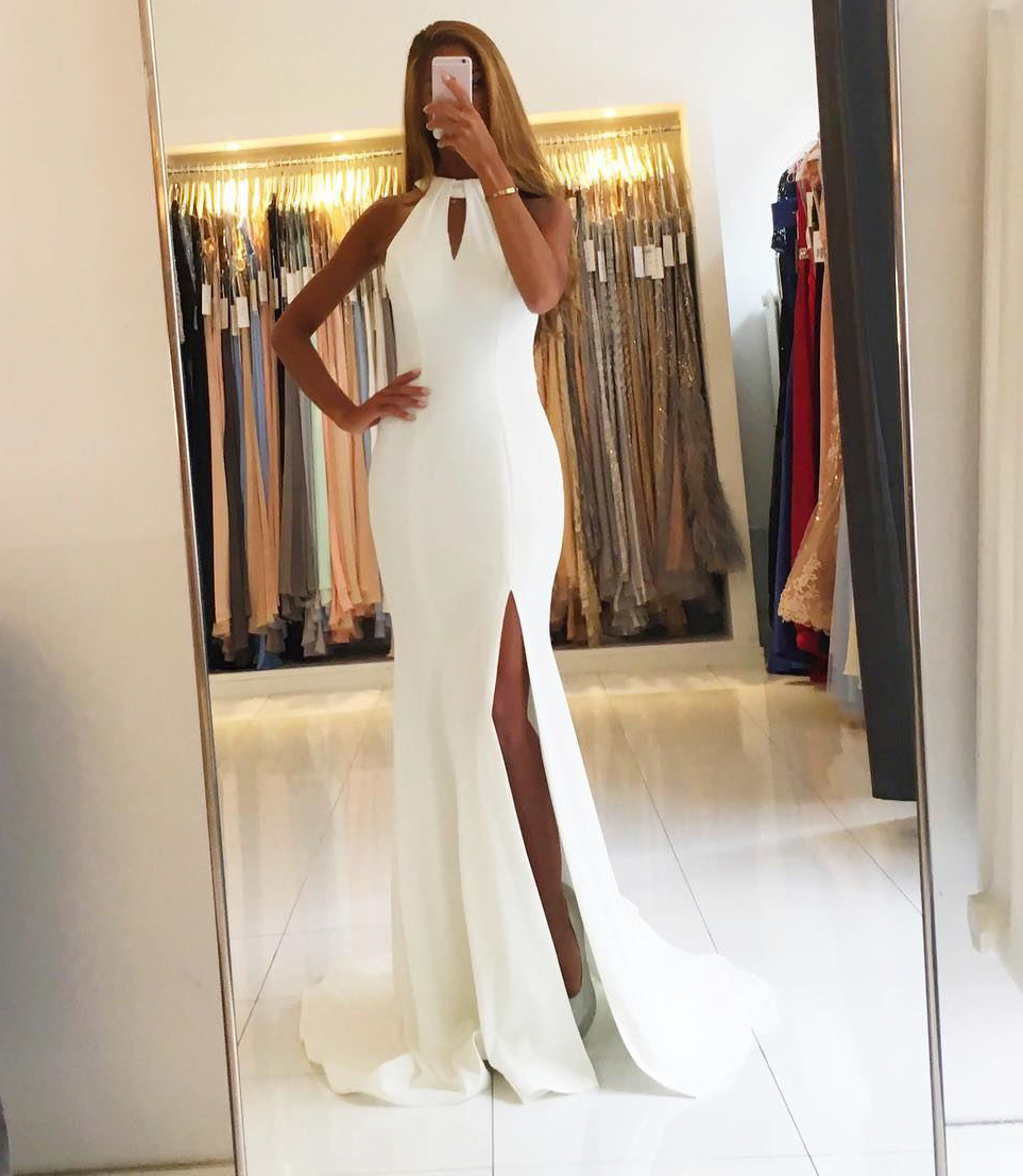 Backless White Chiffon Mermaid Evening Dresses Long Prom Gowns