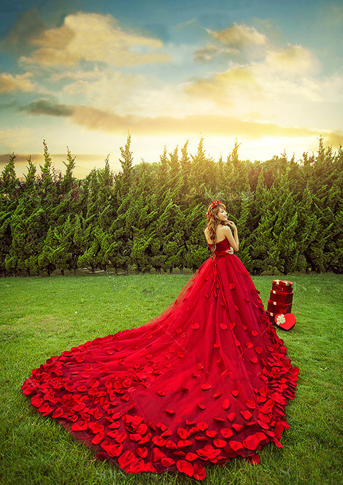 Wedding Dresses Sweetheart Petals Wedding Dresses Princess Off-the-shoulder Lace-up Bridal Gown