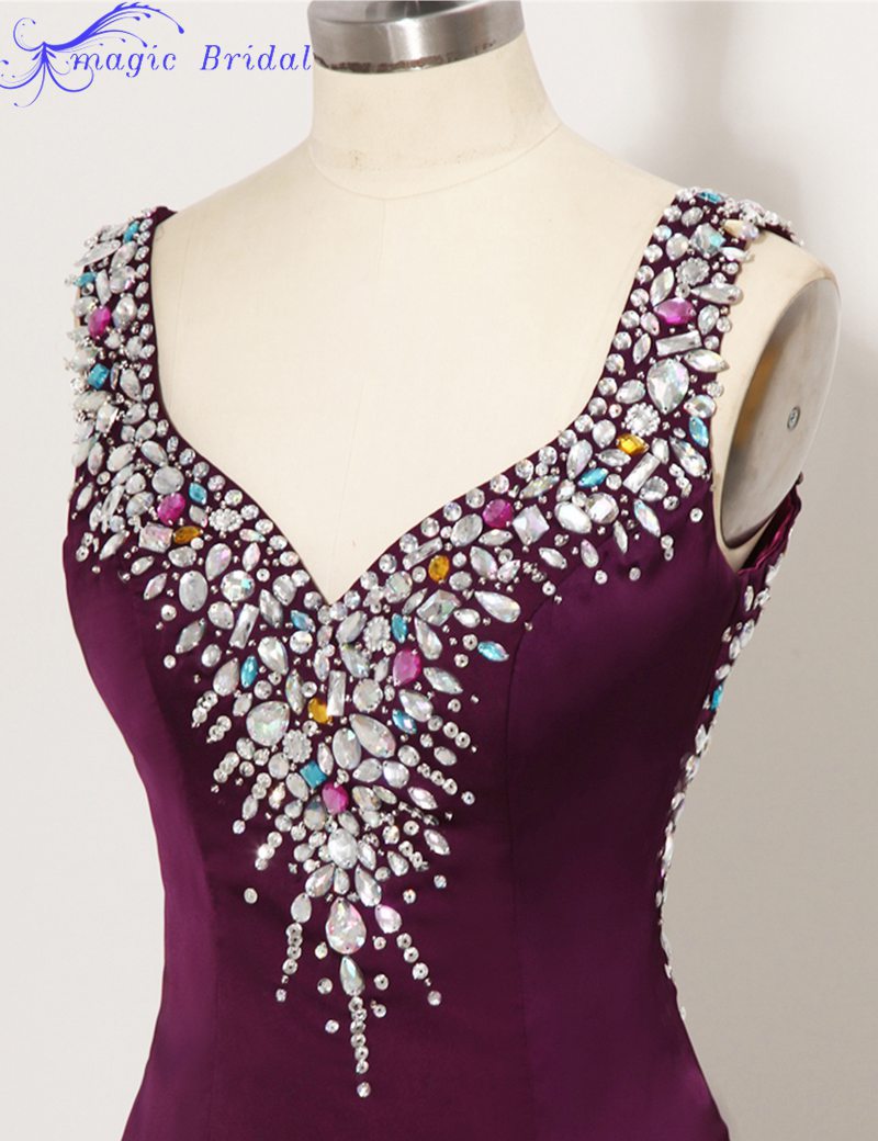 Vestido Longo De Formatura Sexy Backless Crop Top Rhinestone Long Purple Prom Dresses Fast Shipping Real Pictures Customize