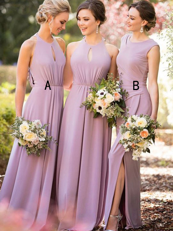 A-line Scoop Floor-length Sleeveless Chiffon Bridesmaid Dresses