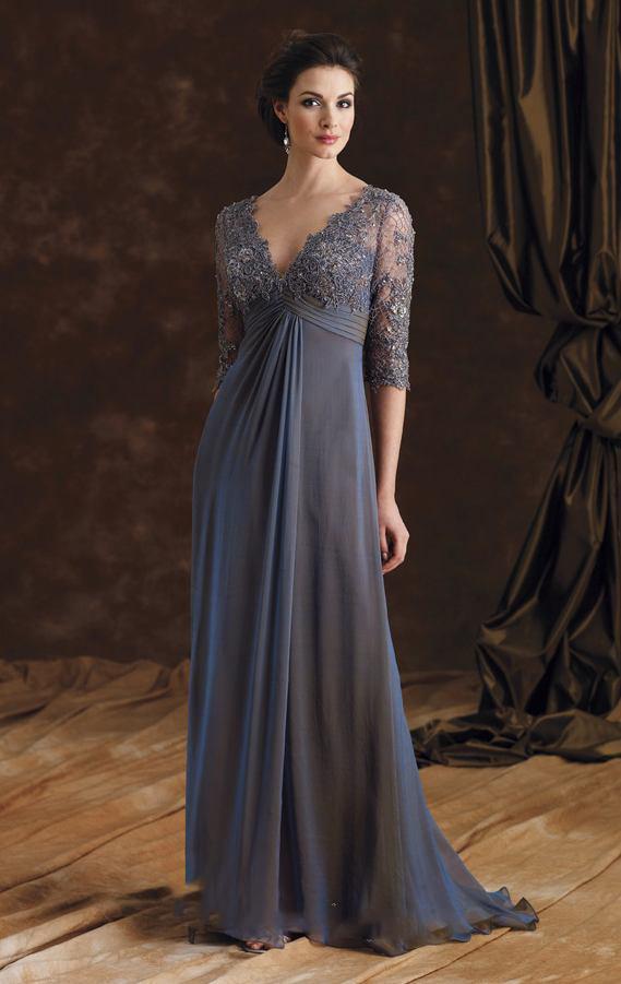 Sexy V Neck Grey Lace Long Mother Of The Bride Dresses, 2016 Half Sleeve A Line Chiffon Brides Mother Dresses