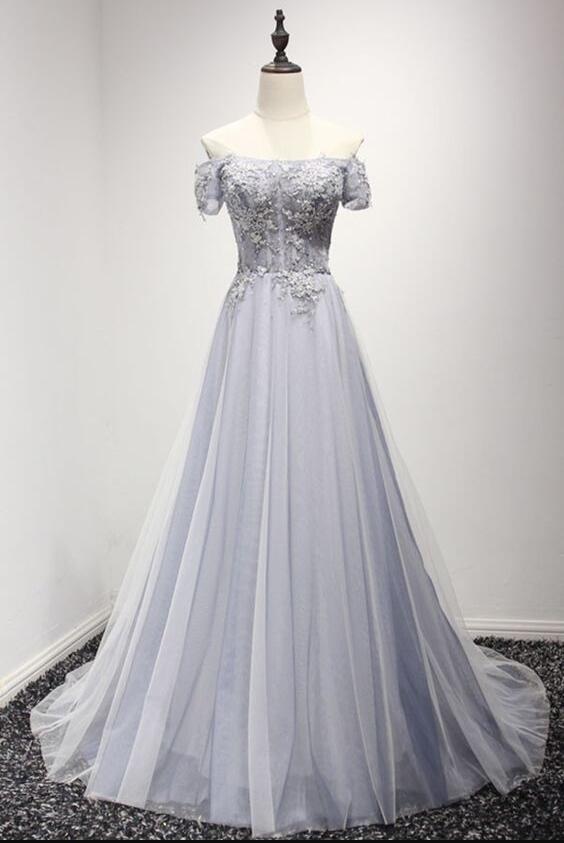 Custom Made Slive Lace Tulle A Line Prom Dress