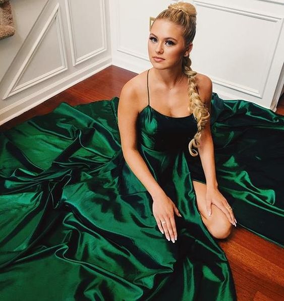 Prom Dress Green Satin Spaghetti Strap Long Evening Dress