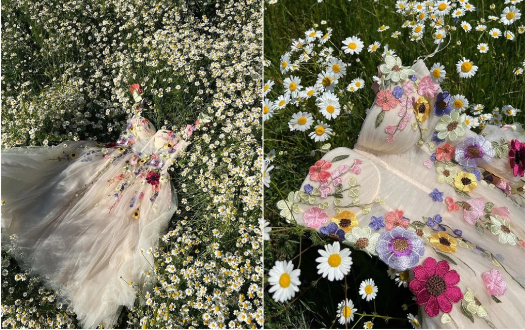 3D color matching water soluble lace applique ball gown party dress banquet dress