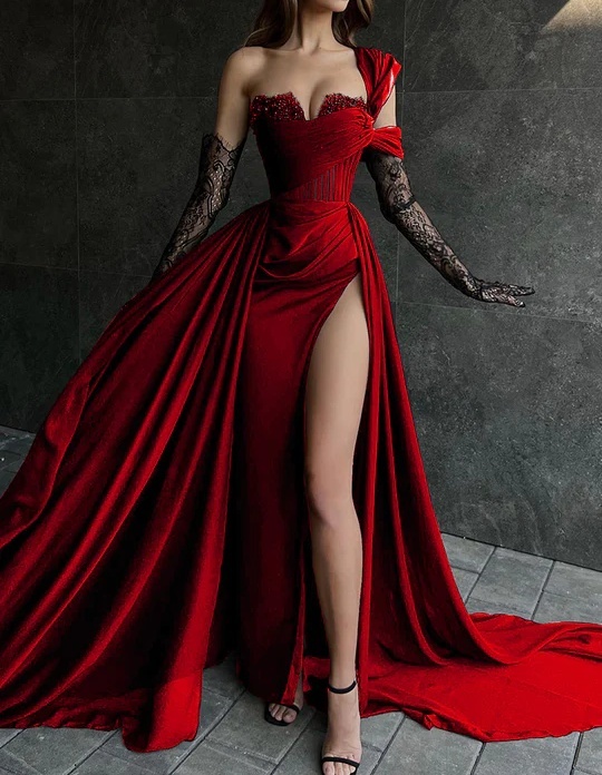 Luxury One-piece A-line Satin Ball Gown Lace-up Slit Party Dress Banquet Dress Evening Dress
