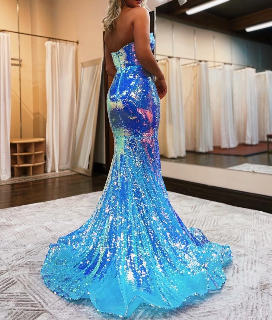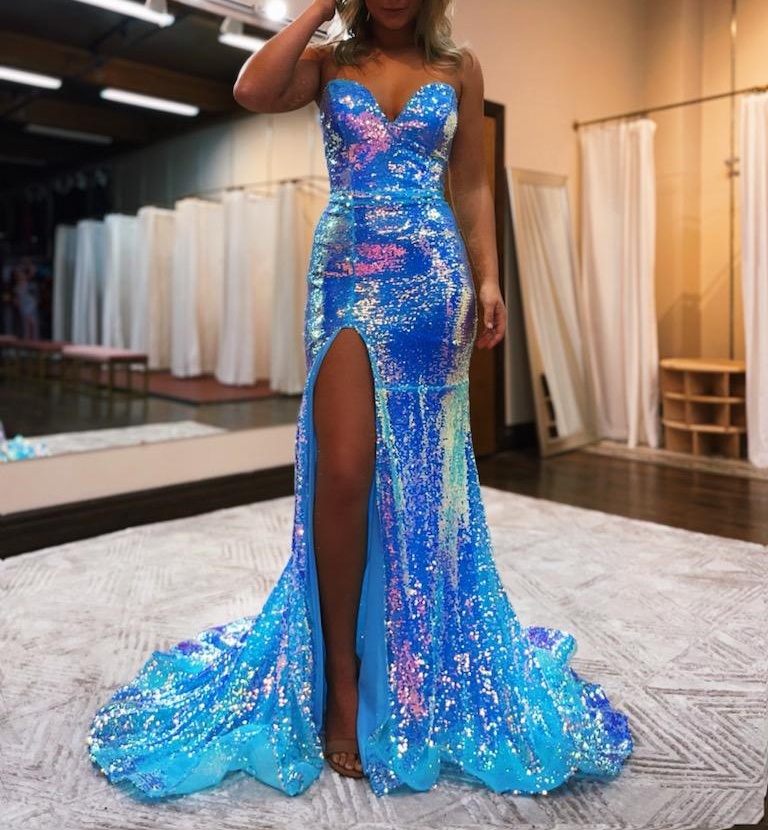 Fashion Illusion Sequin Mermaid Sweetheart Neckline Slit Ball Gown
